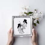 Posa tetera ilustrada en blanco y negro.